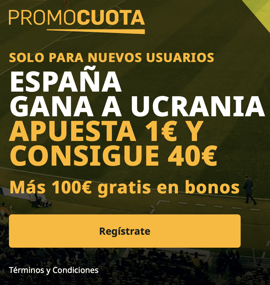 Haz tu primera apuesta en PASTÓN en el partido a Selección 1€ a ganador España a cuota 53 .(aparecerá la cuota normal , pero cumpliendo condiciones te abonarán ganancias de la cuota mejorada).