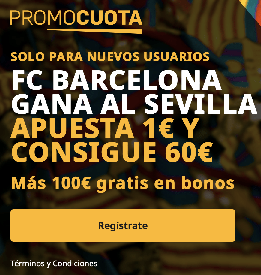 - Haz tu primera apuesta en PASTÓN en el partido a Selección 1€ a ganador Fc Barcelona a cuota 53 .(aparecerá la cuota normal , pero cumpliendo condiciones te abonarán ganancias de la cuota mejorada).