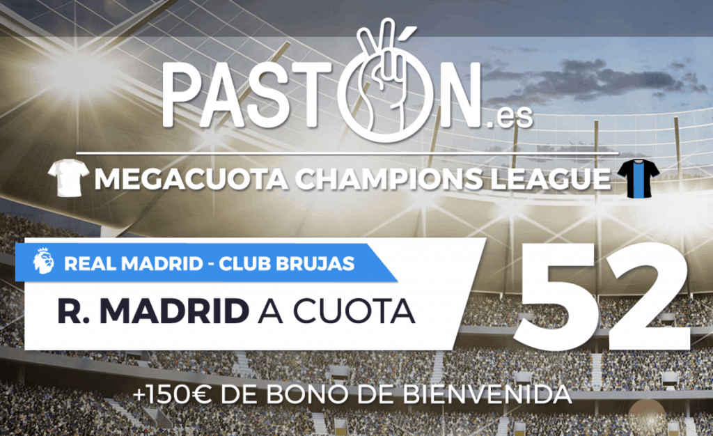 Haz tu primera apuesta en PASTÓN en el partido a Selección 1€ a ganador Real Madrid a cuota 53.(aparecerá la cuota normal , pero cumpliendo condiciones te abonarán ganancias de la cuota mejorada).