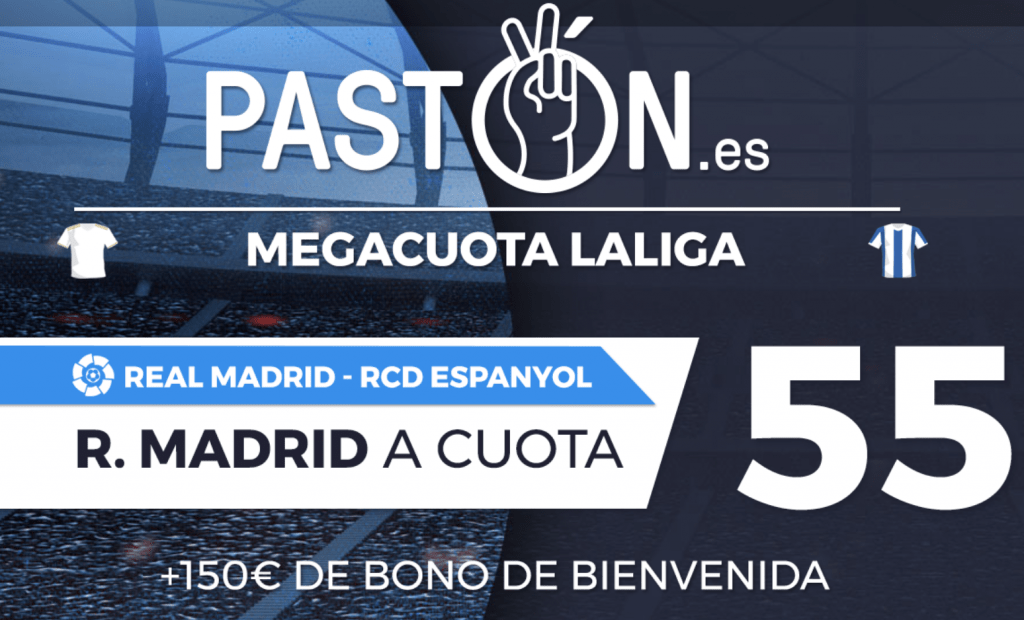 Haz tu primera apuesta en PASTÓN en el partido a Selección 1€ a ganador Real Madrid a cuota 55.(aparecerá la cuota normal , pero cumpliendo condiciones te abonarán ganancias de la cuota mejorada).