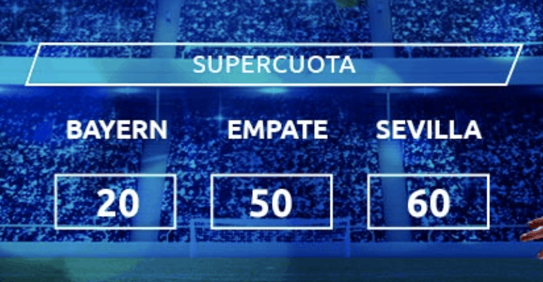 Bayern gana al Sevilla a cuota 40. Sevilla gana a cuota 100.